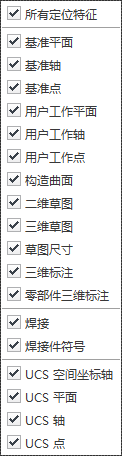 注: 可能会有冲突的可见性状态。例如,如果使用关联菜单选项关闭工作平面的可见性,则在“对象可见性”下拉列表中启用工作平面的可见性时,该工作平面将不可见。如果发生冲突,请在“对象可见性”中启用该元素,然后检查在浏览器中的状态。
