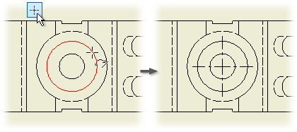 在图形窗口中,单击要放置中心标记的特征。