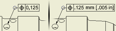 在所选文本框、形位公差符号或基准目标符号中更改数字信息基本度量单位的格式。