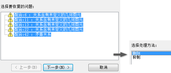 您现在可以利用设计医生选择多个无效约束,然后删除或抑制它们。