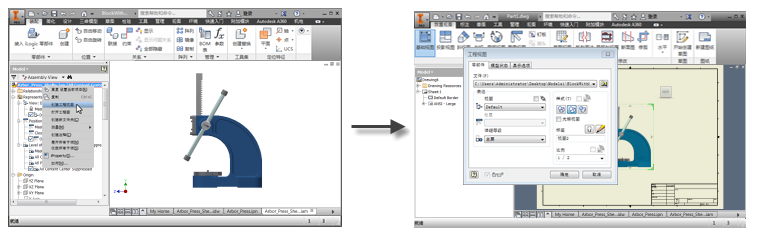 全新的“创建工程视图”命令可将几个步骤合并为一个步骤,因此您可以从模型文件快速创建工程视图。在模型文件中,根据需要对模型进行排列。然后,在浏览器中的根零部件上单击鼠标右键,再单击“创建工程视图”。