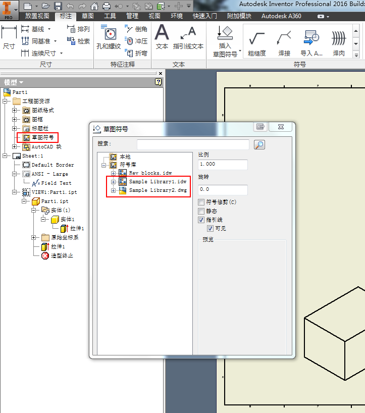 现在,可以通过新的外部略图符号库轻松访问和共享略图符号集合。该库是一个 Inventor 工程图文件,默认情况下,它位于您项目的“设计数据”位置的子文件夹中。