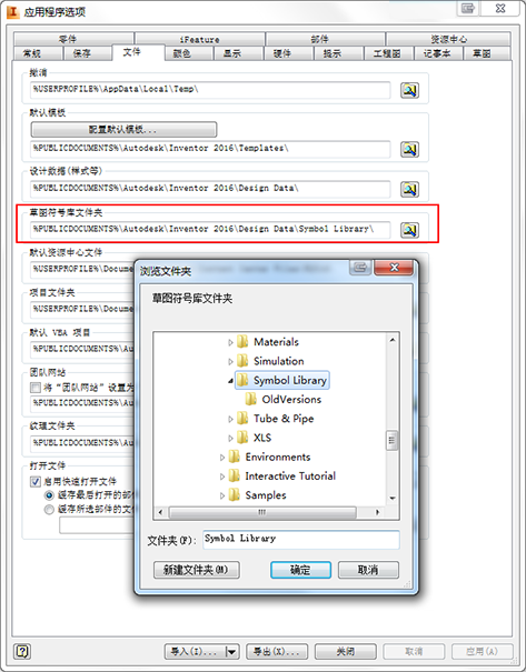 “应用程序选项”对话框中提供了新的“略图符号库”文件夹条目