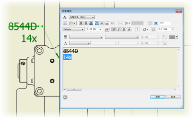 在创建或编辑工程图文件中的文本时,该文本会在图形窗口中动态地预览。在关闭“文本格式”对话框之前,可以优化文本的外观。