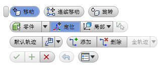 当默认轨迹不满足您的需求时,可以手动添加轨迹或轨迹段。在“调整零部件位置”小工具栏中,单击