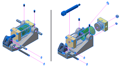 当使用“自动分解”命令时,选择“预览”框可动态预览模型的分解视图。只要更改“自动分解”对话框中的设置,预览即会更新。
