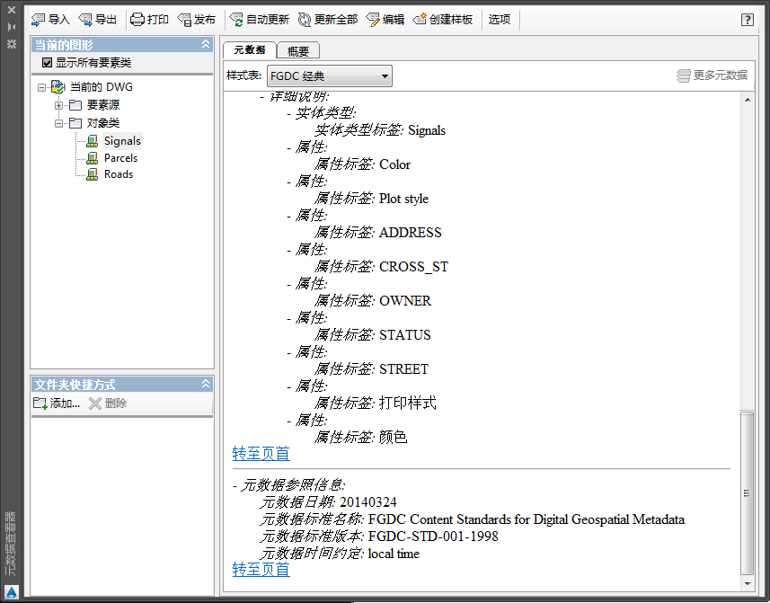 该元数据存储在图形内。每次编辑图形或重新连接到包含已分类对象的附着图形时,都会更新元数据。