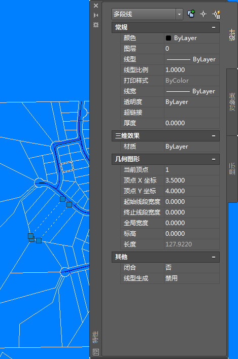 “特性”。 粉色多段线表示地块并具有与地址、面积、值等有关的对象数据。