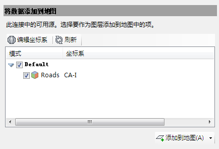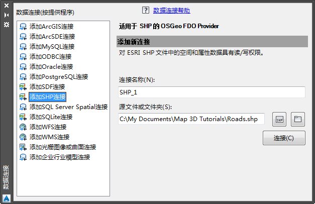将显示数据连接窗口。