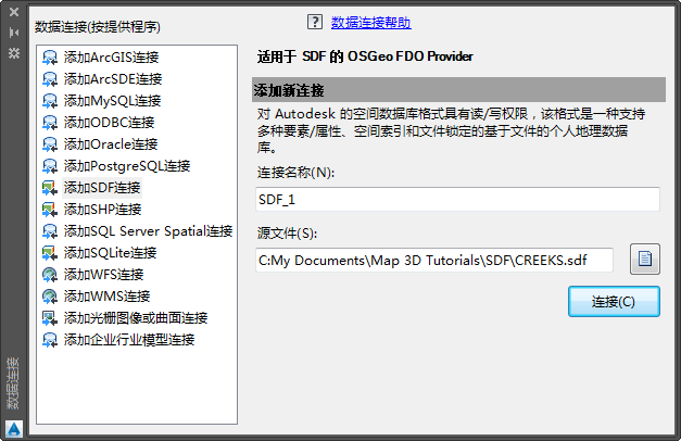 连接到 SDF 文件的步骤