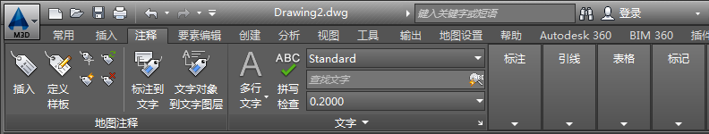 在功能区中单击“注释”选项卡可查看“地图注释”选项。