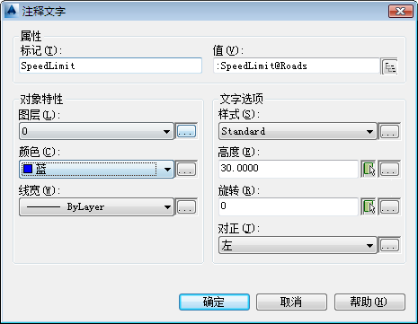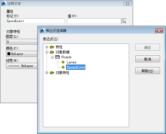 如果图形包含对象数据或者被链接到外部数据,您可以指定该数据的特性作为注释的值。这些特性是动态的。将注释附着到对象时,每个对象都针对该特性显示其自己的值。