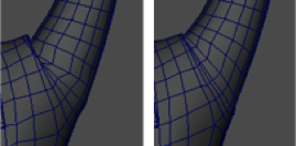 Maya 将变形分割为两个变形链。可以使用“分割”(Split)同时以两种方式使对象变形,从而创建源自同一原始形状的两个最终形状。 |