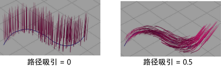 定义在增长模拟的每个步骤将管吸引到笔划路径的力的幅值。如果该值为 0,则不对管应用力。随着该值增大,管将收敛到路径。如果该值为正值,将吸引管,如果为负值,将排斥管。