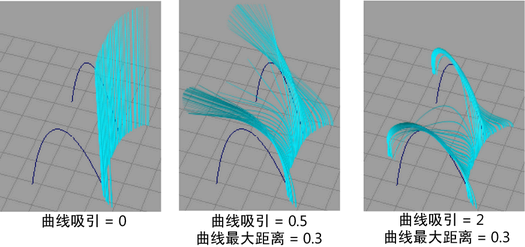 您可以使管吸引到与笔划关联的控制曲线。有关详细信息,请参见使用控制曲线修改管行为。“曲线”(Curve)“吸引”(Attract)设置定义将管吸引到关联的控制曲线的力的幅值。如果该值为正值,将吸引管,如果为负值,将排斥管。
