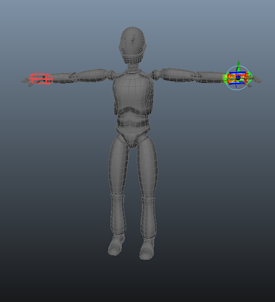 网格平滑绑定到骨架,并在其中一个选定的关节上显示体积操纵器。