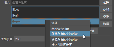 您的集合中可能缺少多个对象。若要标识所有这些缺少的对象,请在“特性编辑器”(Property Editor)中的节点列表上单击鼠标右键,然后选择“选择所有缺少的对象”(Select all missing objects)。