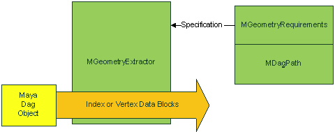 Figure 23: For a given DAG path, a set of geometry requirements is passed to the extractor. From the associated DAG object, a set of index or vertex data blocks can be extracted.