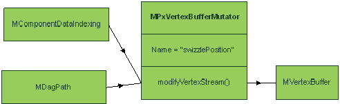 When a mutator is required to perform an update, an associated Maya DAG path and data stream indexing are passed in. An existing MVertexBuffer is passed in for update and data is modified in-place.
