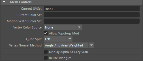 By default, the logic used for polygonal shapes attempt to provide the best shaped triangles. However, for remapping, the overriding goal is to obtain predictability as to how the splitting occurs. As such, the quadSplit attribute on mesh shapes can be set to improve predictability.