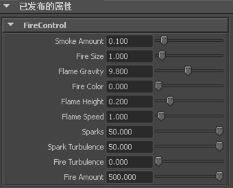 修改效果的最简单方法是调整资源的已发布属性。通过这些属性可以控制效果的特定特征。例如,“火”(Fire)资源具有用于调整火焰密度、速度和高度以及发射火花数量的属性。
