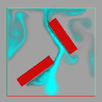 - 移动流体容器内要与流体碰撞的几何体。该几何体必须位于容器内,才能受到流体的影响。