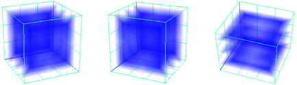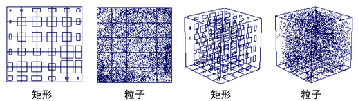 在流体容器的栅格线上显示矩形。较大的矩形表示使用较高值或不透明度的区域。
