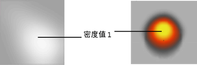 例如,下面是一个被映射到“密度”(Density)的黑色、橙色和黄色灰度渐变和颜色渐变: