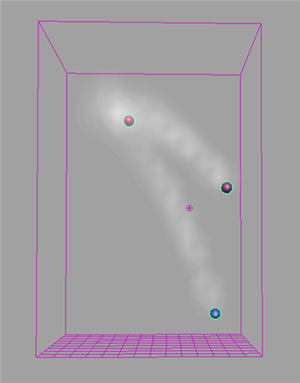 可以使用 nParticle 将流体属性(密度、温度、燃料和颜色)添加到流体容器中。与流体发射的其他方法一样,从 nParticle 对象发射流体将创建流体属性值并在播放模拟时修改栅格体素的值。