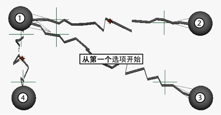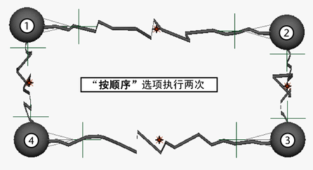 请注意,在“按顺序”(In Order)选项的上述图例中,闪电未从对象 4 延伸回对象 1。如果要执行该操作,需要在对象 4 到对象 1 之间添加另一个闪电效果。
