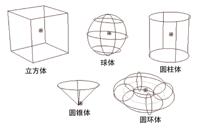 可以选择体积以定义粒子或刚体在其中受 Maya 中的任何场影响的空间区域。可以使用的体积形状有立方体、球体、圆柱体、圆锥体和圆环。