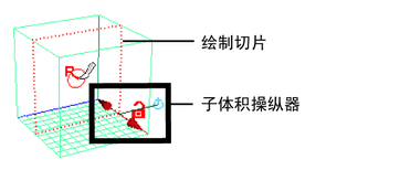 可以使用显示在切片一角的流体操纵器来控制所绘制切片的位置和厚度。有关详细信息,请参见显示 3D 容器的子体积。