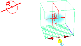 首次选择“绘制流体工具”(Paint Fluids Tool)时,系统将在流体容器的原点处显示一个绘制切片。切片以由虚线边构成的平面表示,且流体子体积操纵器位于切片的一角。将指针移动到切片上时,指针将变为笔刷,指示您可在切片上进行绘制。