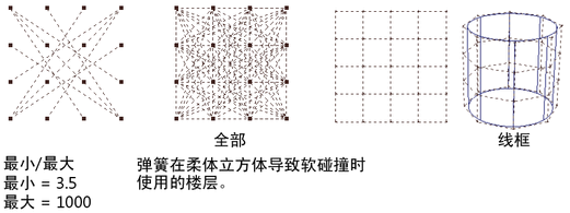 在所有选定的成对点之间创建弹簧。如果希望对象在其整个形状中有一个统一的弹簧结构(例如,反弹球或块),请选择该选项。