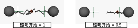 创建闪电时,选择的第一个对象为开始对象,选择的第二个对象为结束对象。“闪电开始”(Lightning Start)属性确定开始对象和结束对象之间的闪电开始点。