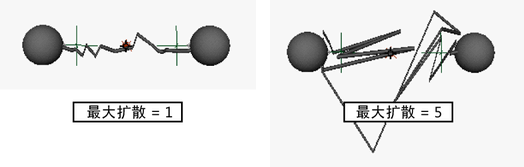 可以使用切线操纵器调整闪电远离开始对象移动的方向或向结束对象移动的方向。