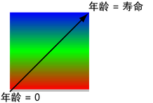 在寿命的结束阶段,属性的值等于 0,因为渐变底部的 R 组件为 0。(颜色为黑色,RGB 值为 0、0、0)。