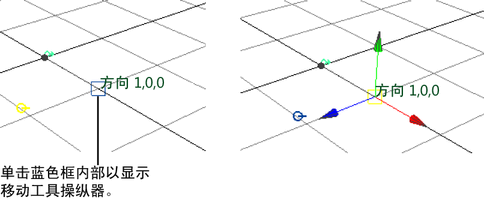 单击蓝色框的内部可显示与“移动”(Move)工具相同的操纵器。拖动中心以在所有方向上移动,或者拖动其中一个箭头以在有方向约束的情况下移动。