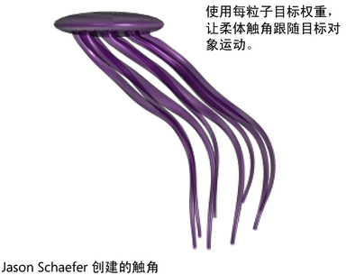目标是粒子跟随或移向的对象。可以使用目标为后续粒子提供通过其他动画技术很难生成的流动运动。后续粒子的移动就好像已通过不可见弹簧连接到目标一样。在目标的上下文中,柔体被视为粒子。