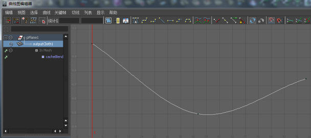 “曲线图编辑器”(Graph Editor)将打开,选定的缓存片段权重曲线将在其图形视图中处于框显状态。
