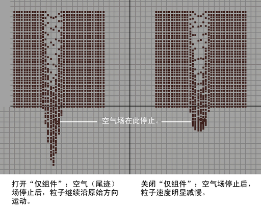 如果禁用“仅组件”(Component Only),空气场会应用使受影响对象的速度与空气场的速度匹配所需的任何力。