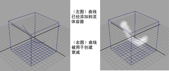 - 使用容器中的曲线或使用“绘制流体工具”(Paint Fluids Tool)创建衰减样式。