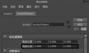 定位器形状节点上的属性可以更改定位器的局部比例;也就是说,可以更改定位器的大小(不影响定位器的子对象或受定位器约束的对象)。