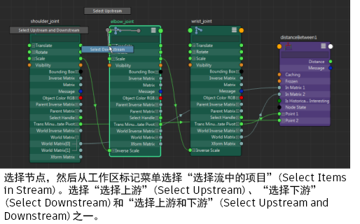 提示: 也可以使用热键,或分别选择选定节点的上游或下游节点。若要同时选择上游和下游节点,请使用快捷键 /。