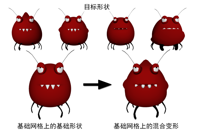 - 目标形状有时也称为“目标”,是指源于目标对象的形状。您也可以将基础对象直接修改为不同的姿势,并将每个姿势另存为目标形状。顶点与基础形状的偏移将保存在每个目标形状中。