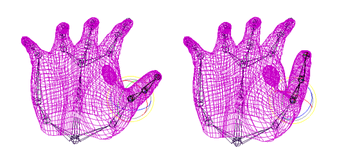 影响对象可以通过影响蒙皮点的位置(转换)属性来变形平滑蒙皮对象。若要浏览使用影响对象在手中创建肌肉凸起的示例,请参见为手设置蒙皮。