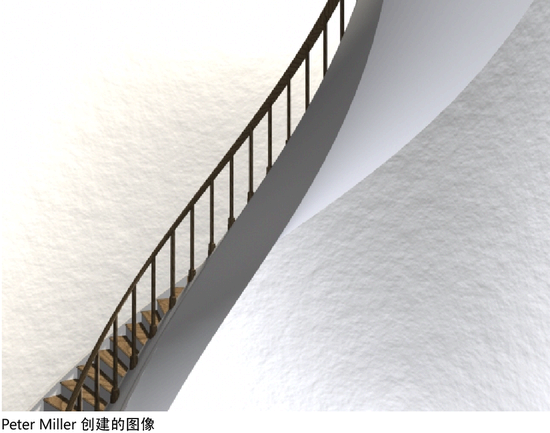 楼梯模型的基板、扶手和装饰板条是使用扭曲变形器形成的。