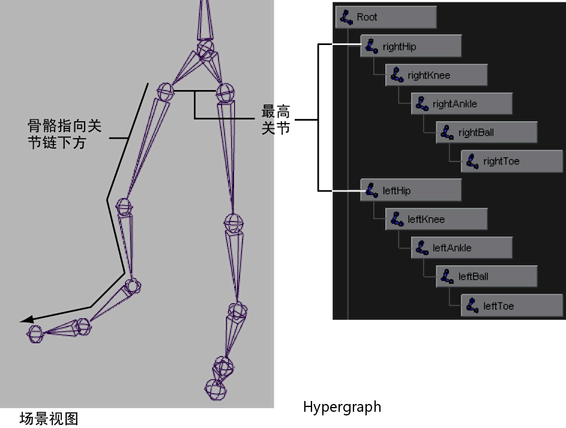 关节链是任何一组串联的关节及其骨骼。关节以线性方式连接,它们的路径以骨骼的形式表现在屏幕上。关节链从链层次的最高关节处开始,然后沿链向下绘制骨骼。