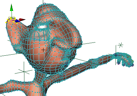 如果愿意的话,可以更改变形顺序,使点调整不在第一时间发生。请参见更改蒙皮对象的变形顺序。