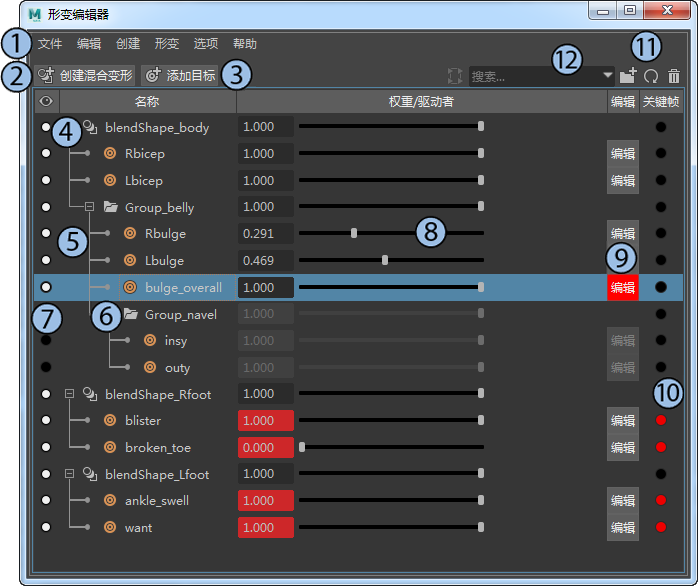 形变编辑器是用于创建、编辑和管理形变以进行形变创作的主要工具。